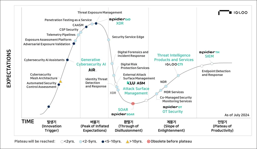 이러한 기술과 관점의 변화를 반영하듯이 2023년 가트너 하이프 사이클에 반영되었던 ‘BAS(Breach and Attack Simulation)’이나 ‘Automated Penetration Testing and Red Teaming Technology’ 등의 항목은 삭제되고, ‘Cybersecurity AI Assistants’나 ‘Adversarial Exposure Validation’이 새롭게 추가되었다. 이는 사이버 보안 생태계의 불안전성과 복잡성이 증가함에 따라 조직에서 운영되고 있는 자산의 공격 벡터가 악용될 소지가 있는지 식별하고 우선순위에 따른 대응하기 위한 관점이 반영된 결과가 해석될 수 있다. 기존에는 노출된 위협을 식별하고 공격 가능성에 대한 것을 중점적으로 확인하였다면, 기술을 통해 보완하고 완화할 방안을 고민한 것이라 볼 수 있다.