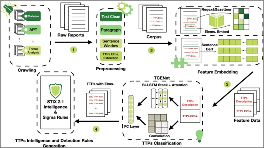 ‘TIM: threat context-enhanced TTP intelligence mining on unstructured threat data’에 따르면 이전의 TTP intelligence mining방식은 정적 TTP 이름으로 결과를 도출하기 때문에 자세한 설명이 부족하여 방어에 한계가 존재하기 때문에 이를 해소하기 위해서는 TTP Intelligence를 unstructured threat data에 포함된 TTP에 대한 description과 elements로 정의가 필요하다고 설명하고 있다. 이러한 기조는 ‘NextGen Automation SOC’를 구현하는데 중요한 요소로 작용하게 된다.