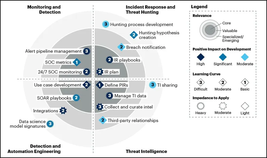 [대응기술 그림 1-6] SOC Capabilities Matrix(출처 : Gartner)