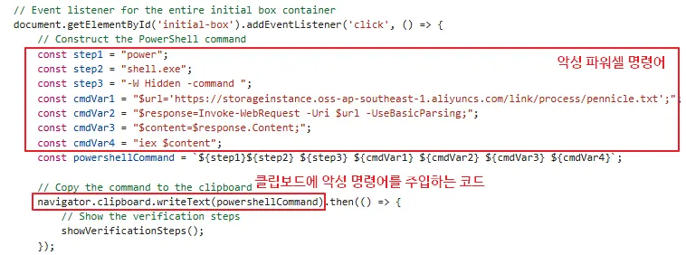 [그림 6] 악성 파워셀 명령어 클립보드 주입 코드