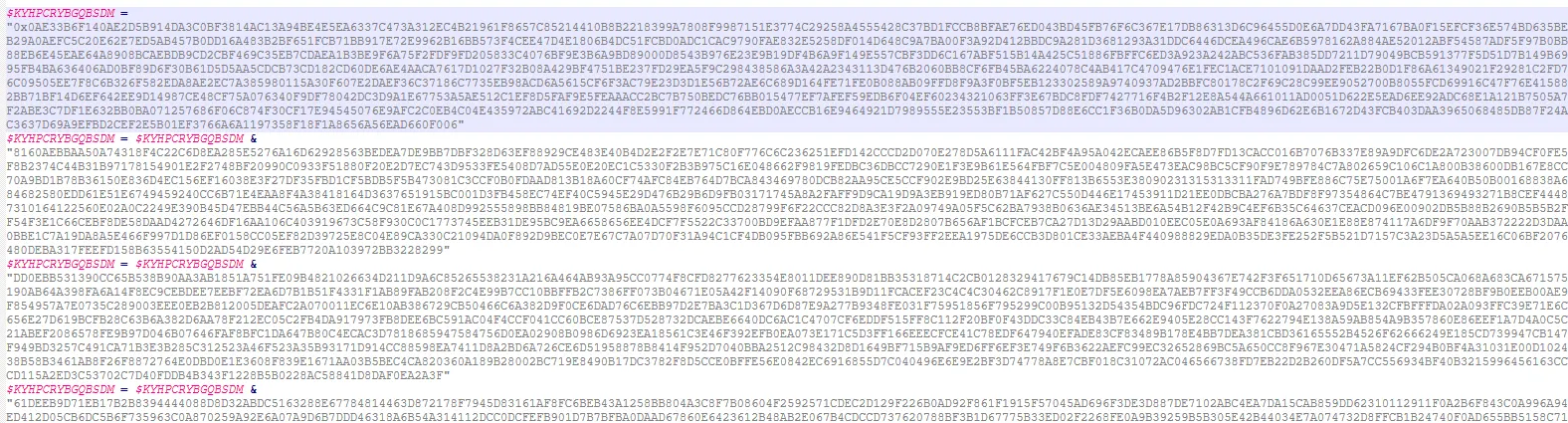 ○ 스크립트 내부에서 확인된 압축 및 암호화된 최종 악성코드 데이터 문자열