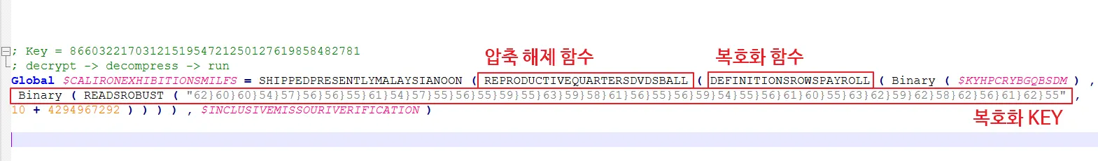 3 | 복호화된 Key를 사용해 압축된 최종 악성코드 복호화 |