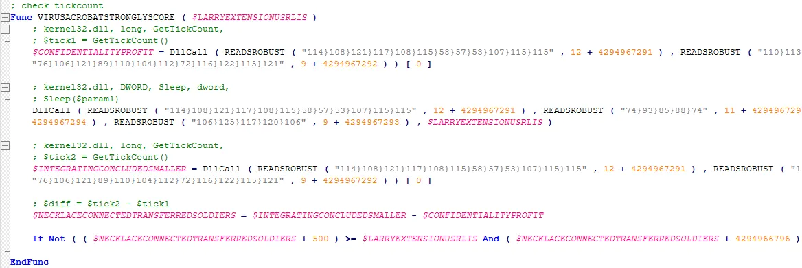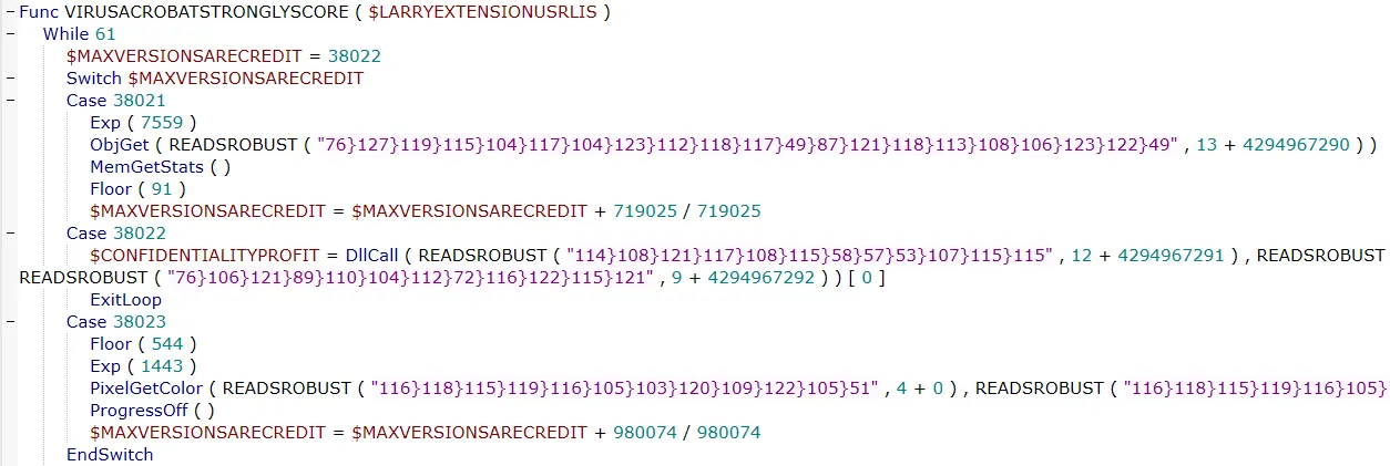 ○ 암호화된 문자열과 다량의 While문, Switch문으로 난독화되어 있는 Autoit 스크립트
