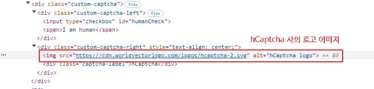[그림 4] hCaptcha 사의 로고를 사용하는 코드