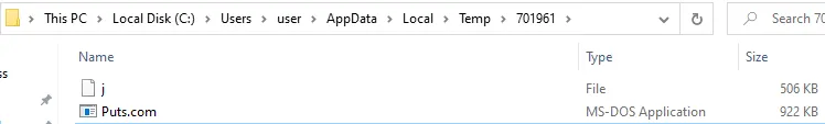 ○ 생성한 Puts.com(Autoit3.exe) 파일을 사용해, 악성 AutoIt 스크립트 j(j.a3x)를 실행
