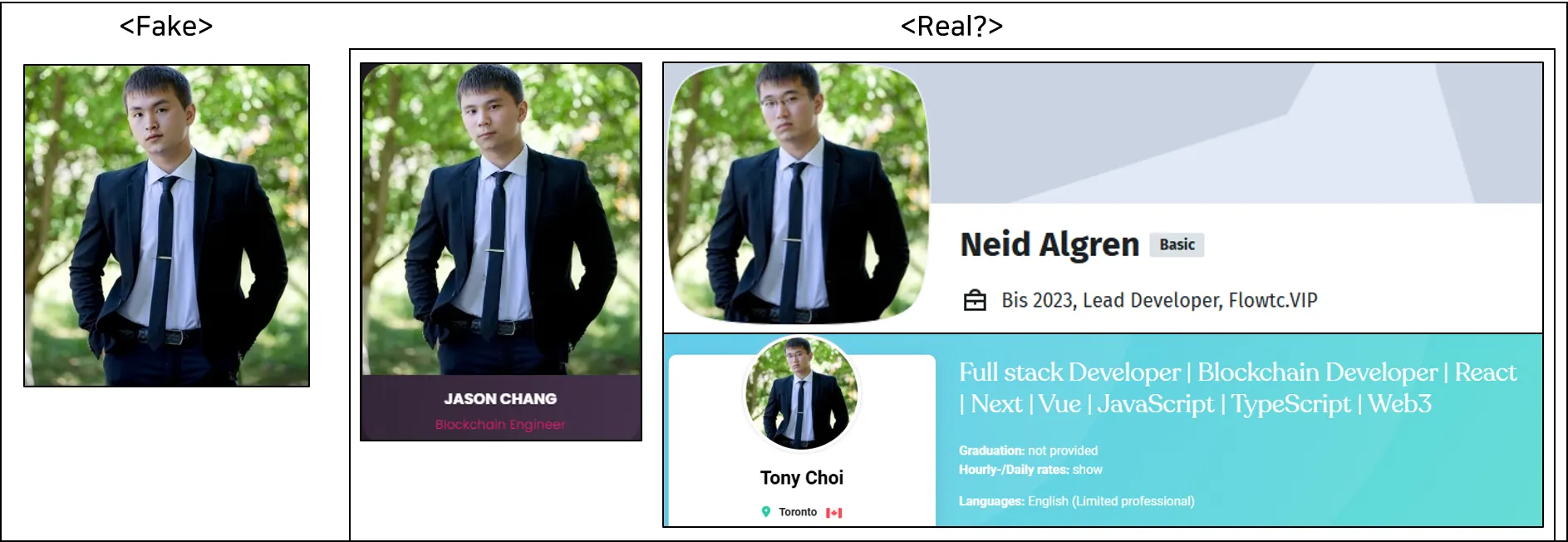 ○ 최근 북한 개발자가 외화획득 및 정보탈취 등의 목적으로 타 국적으로 신분위조를 통해 위장취업 캠페인을 다수 시도 하고 있어서, 원격근무 및 재택근무환경의 기업의 채용담당자 및 구직자의 각별한 주의가 필요합니다.