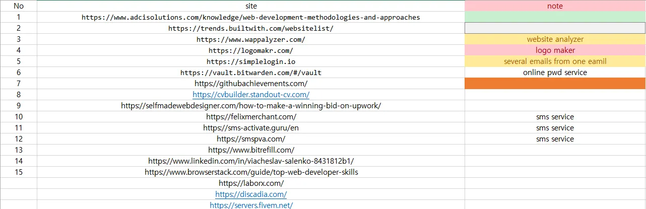 ○ 취업 준비를 위해 참고 및 사용한 것으로 추정되는 사이트들을 모아놓은 엑셀 파일이 발견됩니다.