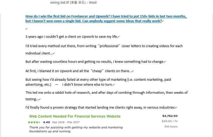 [그림 47] “wining bid.rtf” 문서 내용 일부
