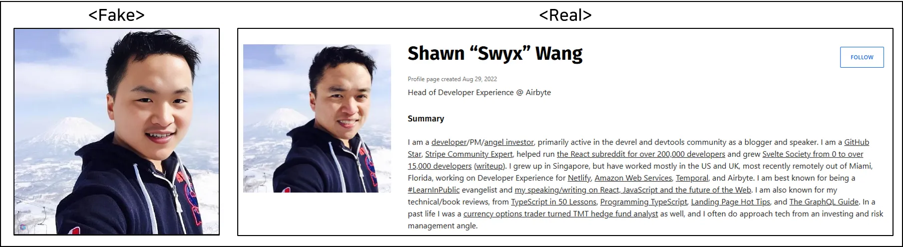[그림 1] 취업 목적의 개발자 위장 계정 (1)
