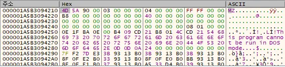 ○ 메모리에 할당된 추가 페이로드는 DLL 형식이며 악성행위는 스레드 생성을 통해 실행되는데, 분석 환경에서 스레드가 제대로 생성되지 않거나 실행 도중 종료되는 이슈가 발생하여 추출한 뒤 정적 분석 위주로 분석 진행