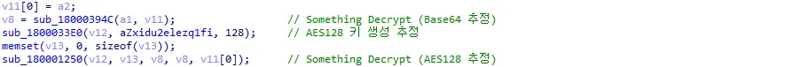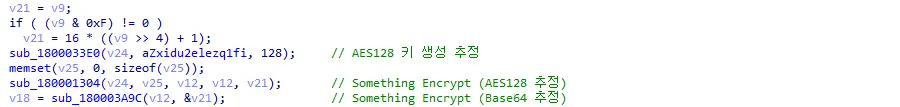 소켓 통신 시 송수신하는 데이터는 암·복호화 과정을 거치는데 이번 파일의 경우 AES128, Base64 등을 이용하였을 것으로 추정