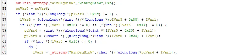 [그림 9] WinOrgBinW 함수 검색 코드 일부