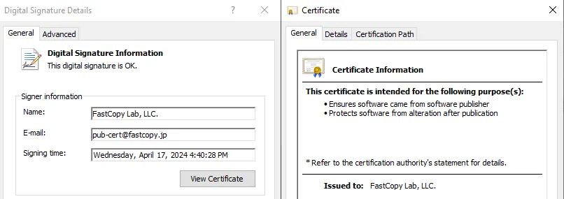 ○ 악성 설치 파일은 사용자를 속이기 위해 정상 설치 파일과 동일한 파일명을 사용했지만, 파일 정보 및 해시는 [그림 2]이나 [그림 3]과 같이 다른 것으로 확인되었으며 정상 설치 파일의 경우 악성 설치 파일과 달리 디지털 서명 존재