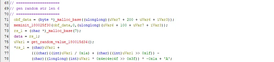[그림 30] 무작위 문자열 생성 코드 일부