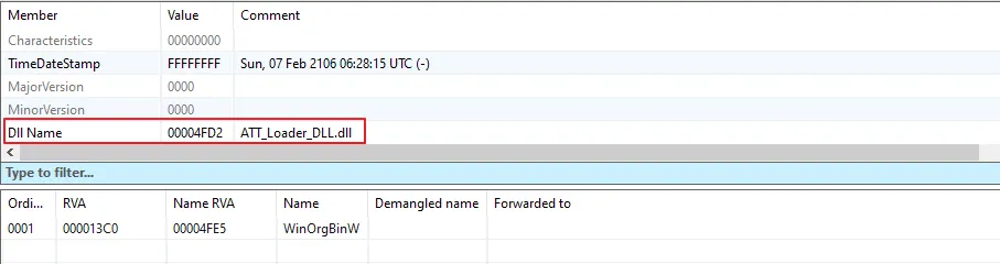 [그림 7] ATT_Loader_DLL.dll의 Export 디렉토리