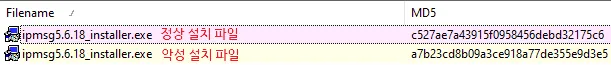 [그림 2] 정상 및 악성 설치 파일 해시 비교