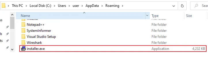 [그림 13] %APPDATA% 폴더에 생성된 installer.exe