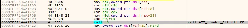 [그림 8] 로드된 ATT_Loader_DLL.dll의 EP 호출 코드