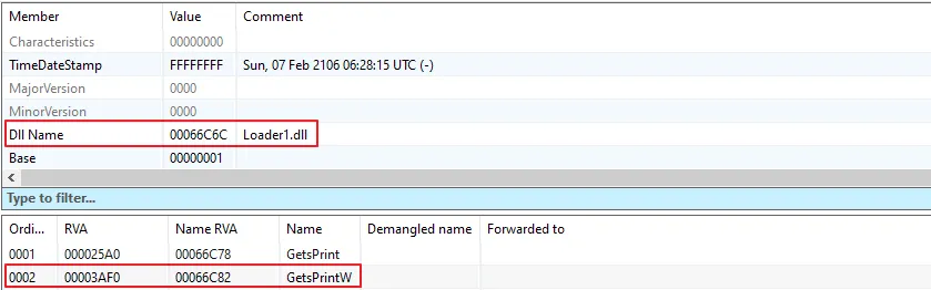 [그림 17] Loader1.dll의 Export 디렉토리