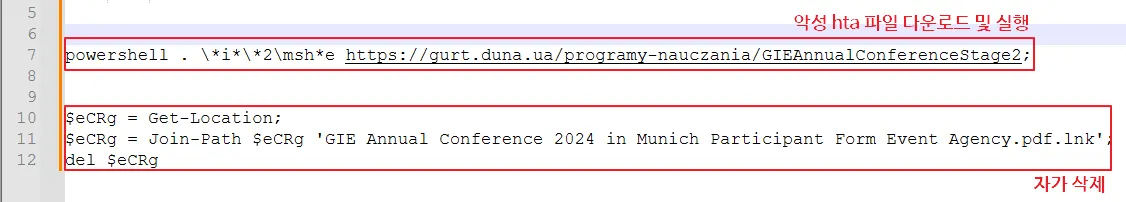 12 | C2 | https://ertel-audit[.]com/wp-includes/GIE_Annual_Conference_2024_Participant_Form.pdf | 미끼 문서 다운로드 |