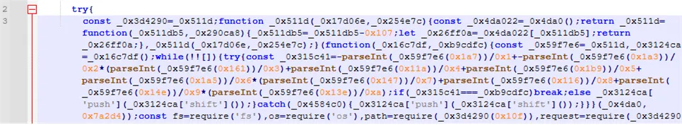 [그림 2] node-clog 패키지에 삽입된 prepare-writer.js에서 확인되는 탐지 우회 시도