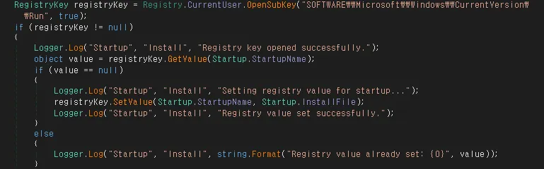 [그림 14] 지속성 유지용 Autorun 레지스트리 등록