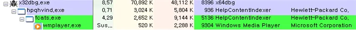 ○ fcats.exe는 hpqvind.exe와 동일하게 진행하다가 의도된 경로에서 실행된 것이 확인되면 윈도우에서 제공하는 기본 미디어 플레이어인 wmplayer.exe에 Shadowpad 모듈을 Injection하여 실행한 후 종료