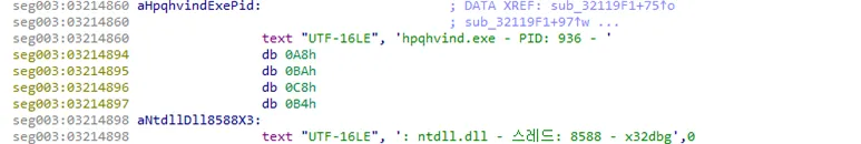 ○ 모듈에서 사용하는 문자열들은 커스텀된 알고리즘으로 암호화되어 있어 사용 시마다 복호화 함수를 이용해 사용