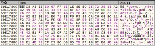 [그림 13] 암호화된 데이터(base 주소 + 0x17800)