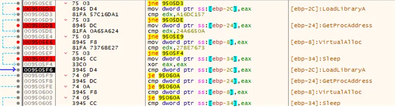 [그림 16] shellcode에서 동적 로드하는 API