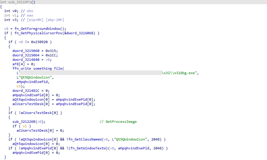 ○ 키보드 메시지에 후킹을 거는 방식을 사용해서 로깅을 하며 현재 실행중인 프로세스의 제목, 파일 경로, 입력한 키 등을 ProgramData 하위 폴더를 생성하여 저장하는 것으로 확인됨