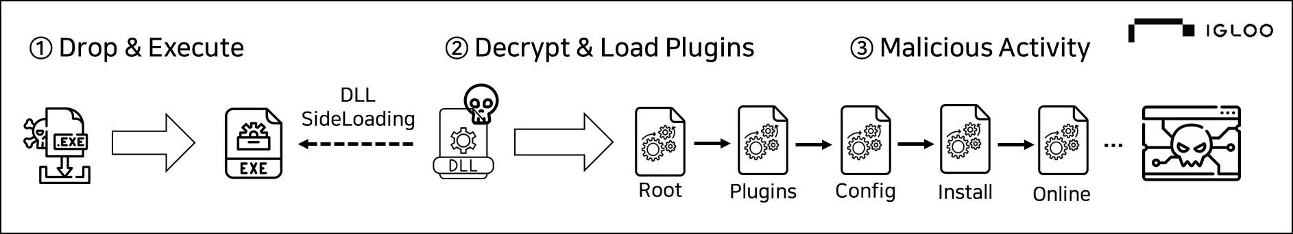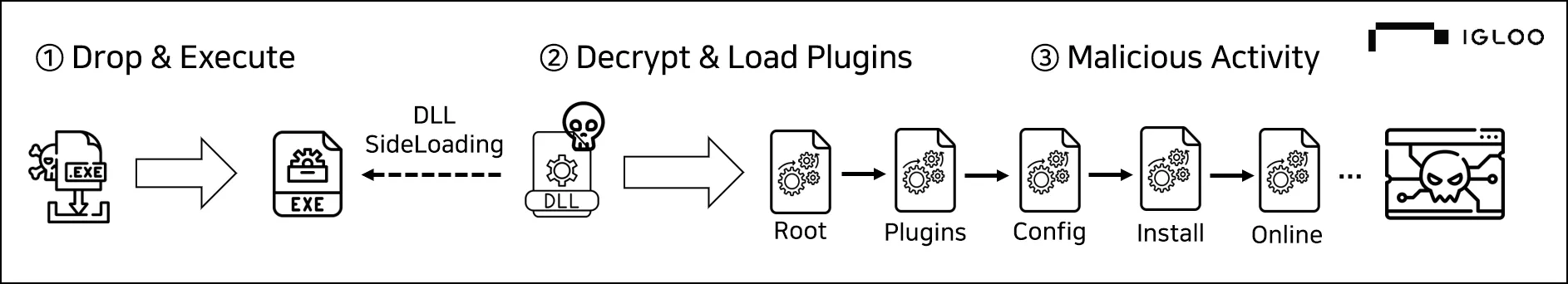 EXE, DLL, DAT | 2018년~ | DLL이 암호화된 DAT 파일 복호화하여 로딩 |