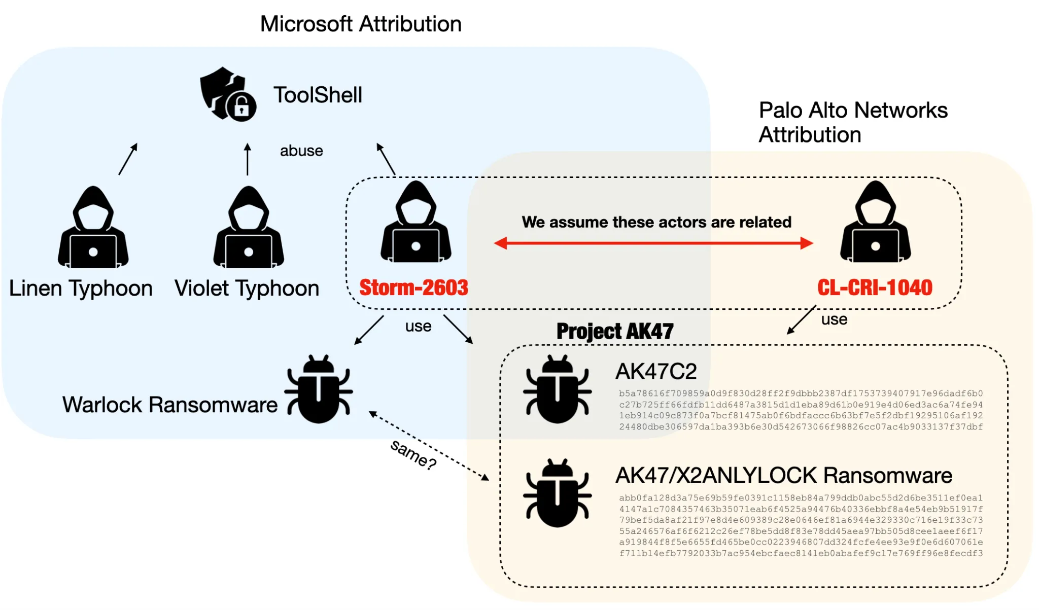② `25.7.7, Threat Actor인 Linen Typhoon, Violet Typhoon, Storm-2603 취약점 악용 발견