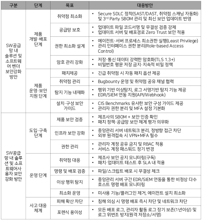 [표 2-5] SW공급망 내 솔루션·소프트웨어 벤더 및 사용자의 보안강화 방안