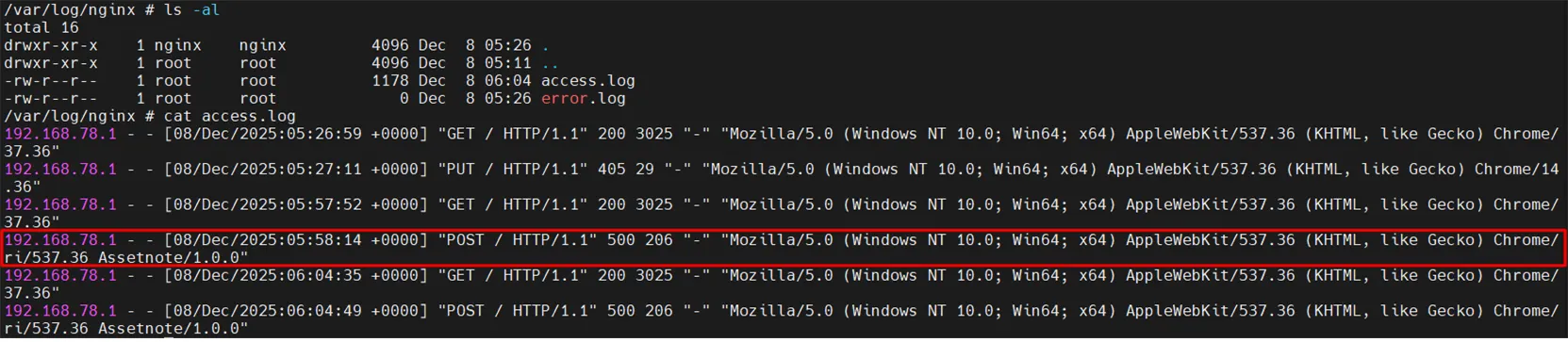 [PoC 테스트 결과 웹로그(/var/log/nginx/access.log) 내용]