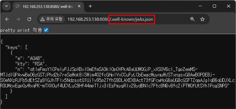 서버 공개키 확인 예시(/.well-known/jwks.json)