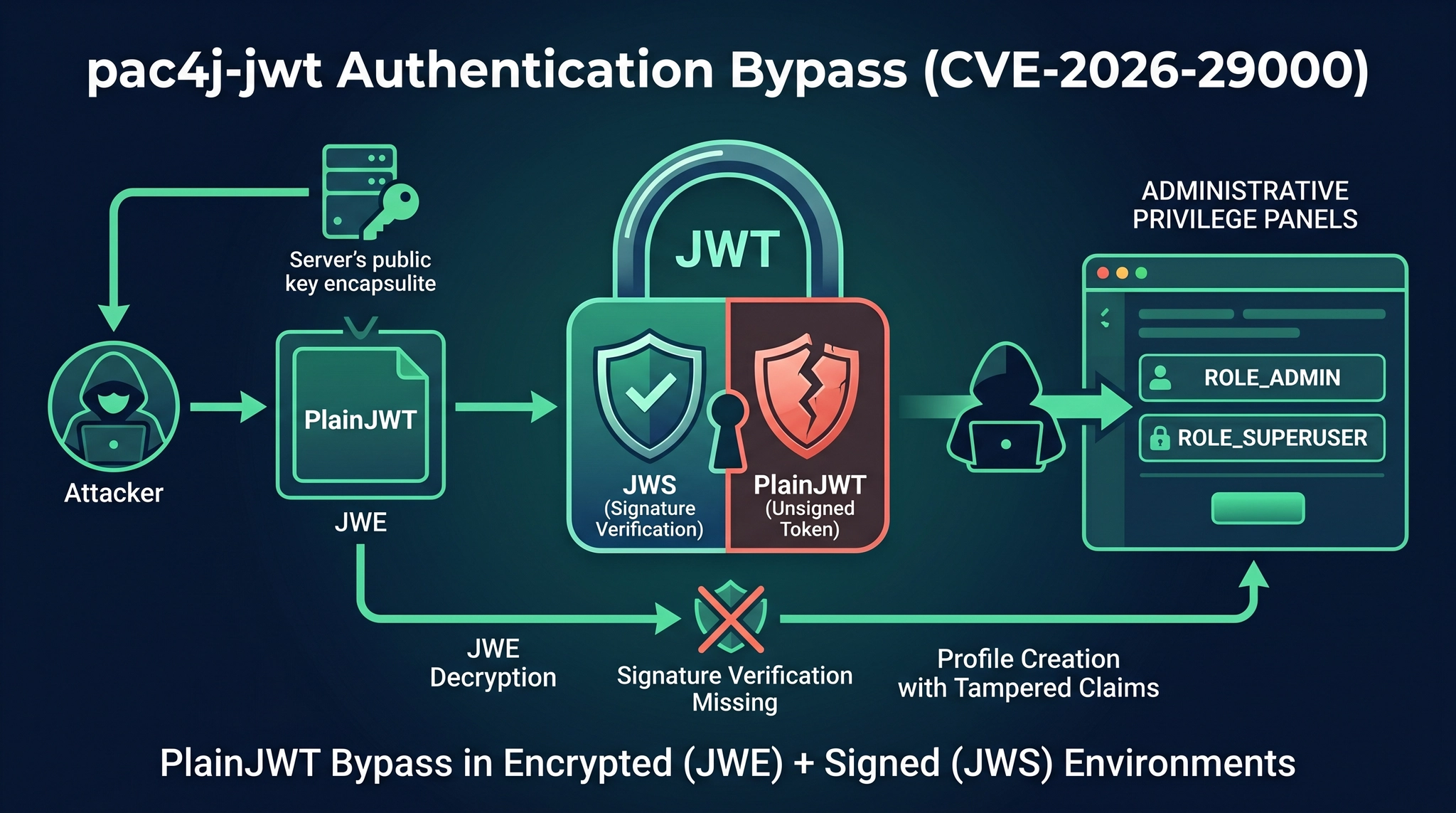 '26년 2월 28일, 자바(Java) 기반 JWT* 인증 라이브러리 pac4j-jwt에서 비서명 토큰(PlainJWT)**을 통한 서명 검증 로직 우회 취약점(CVE-2026-29000) 발견