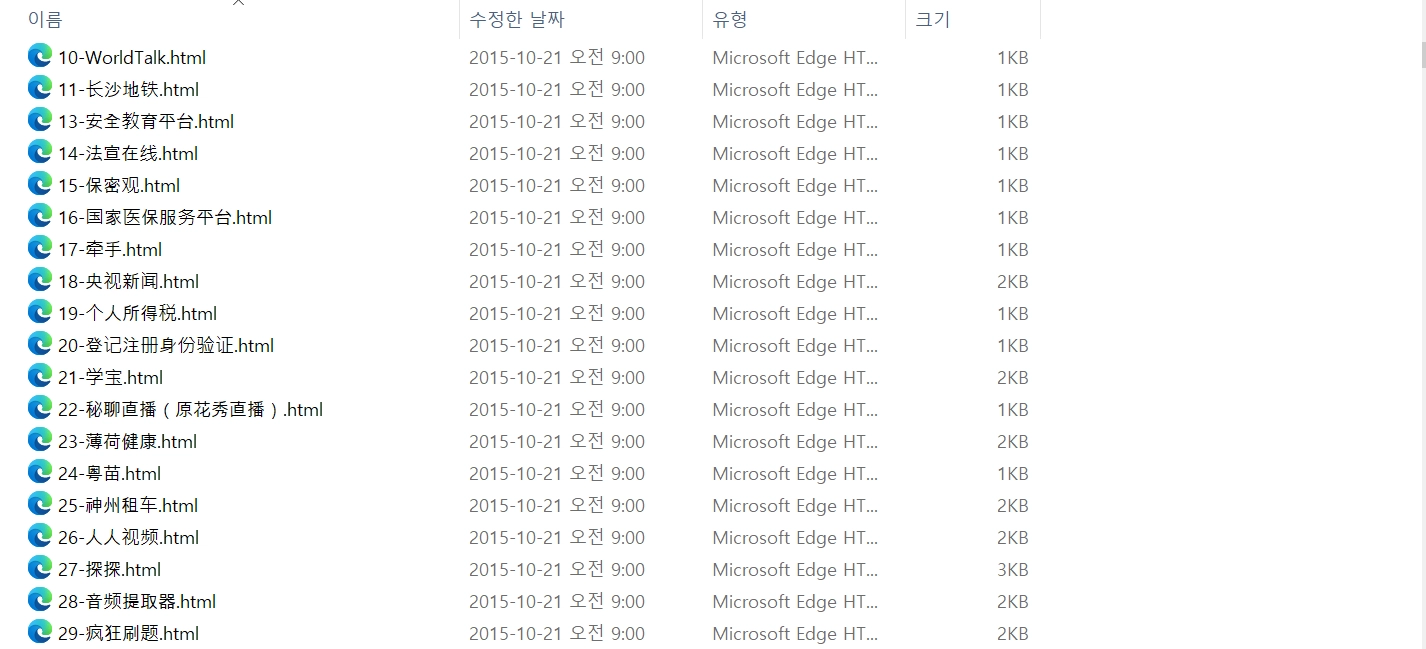 모바일 앱 목록 일부 내역