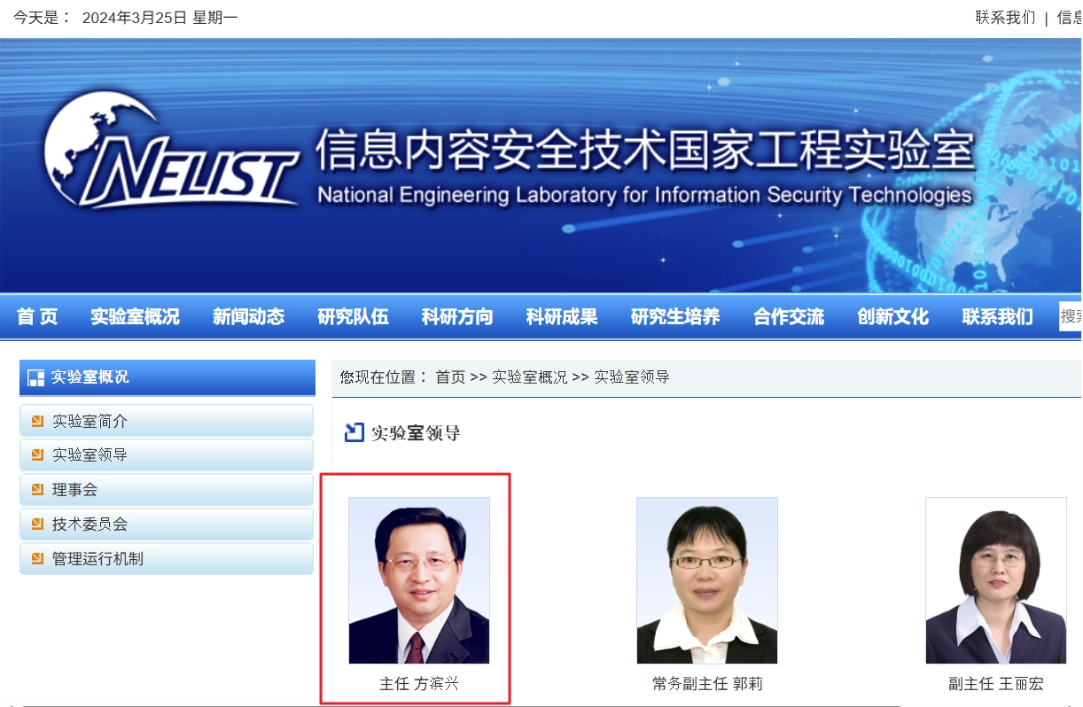 수석 과학자 | • Fang Binxing(方滨兴) |