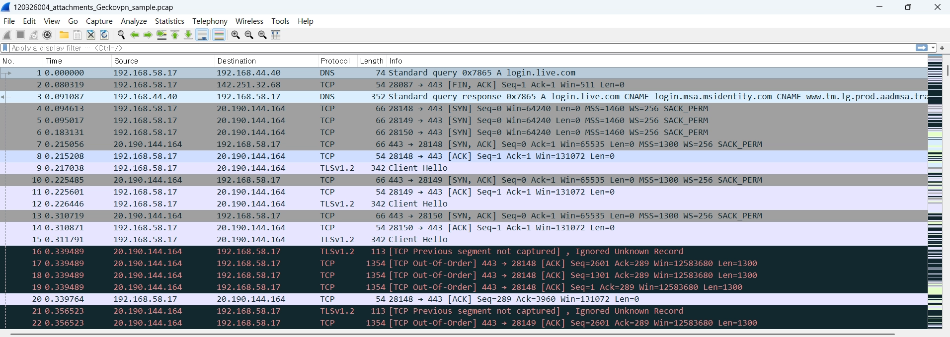 유출 문건에서 확인된 일부 VPN PCAP 내역