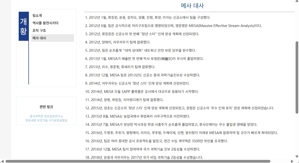 (Massive Effective Stream Analysis Lab) | 중국과학원 정보공정연구소 산하 연구팀 |