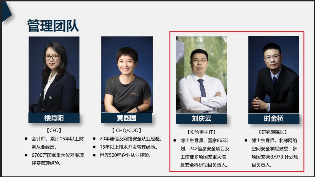 Geedge Networks 내부 회사 소개서에 작성된 연구 핵심 인물 정보