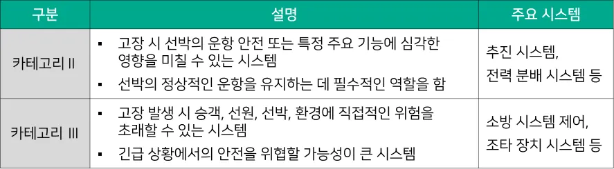 [대응기술 표 4-4] IACS UR E26에 포함된 카테고리 Ⅱ, 카테고리Ⅲ
