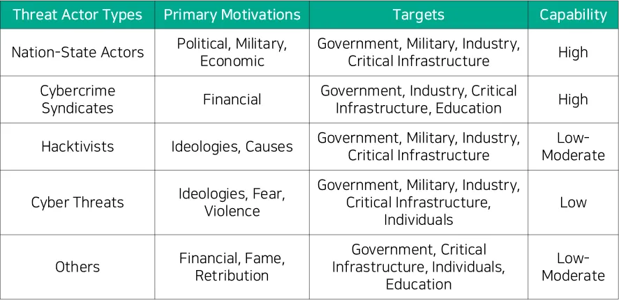 [개요 그림 1-1] High-level overview of major cyber threat actor types (2024 Threat Assessment, New Jersey Office of Homeland Security and Preparedness)