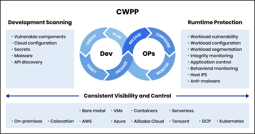 주요 솔루션으로는 Palo Alto Prisma Cloud, Trend Micro Deep Security, McAfee MVISION Cloud 등이 있으며, 이들 도구는 클라우드 환경 전반에 걸쳐 워크로드를 실시간으로 보호하고 일관된 보안 정책과 규정 준수를 유지하도록 지원한다. 워크로드 보호는 단순히 클라우드 제공자의 기본 보안 기능에 의존하는 것이 아니라, 워크로드의 생성, 배포, 실행 모든 단계에서 보안 상태를 점검하고 보호해야 하므로, CWPP는 이 모든 과정에서 통합적인 보호를 제공한다.